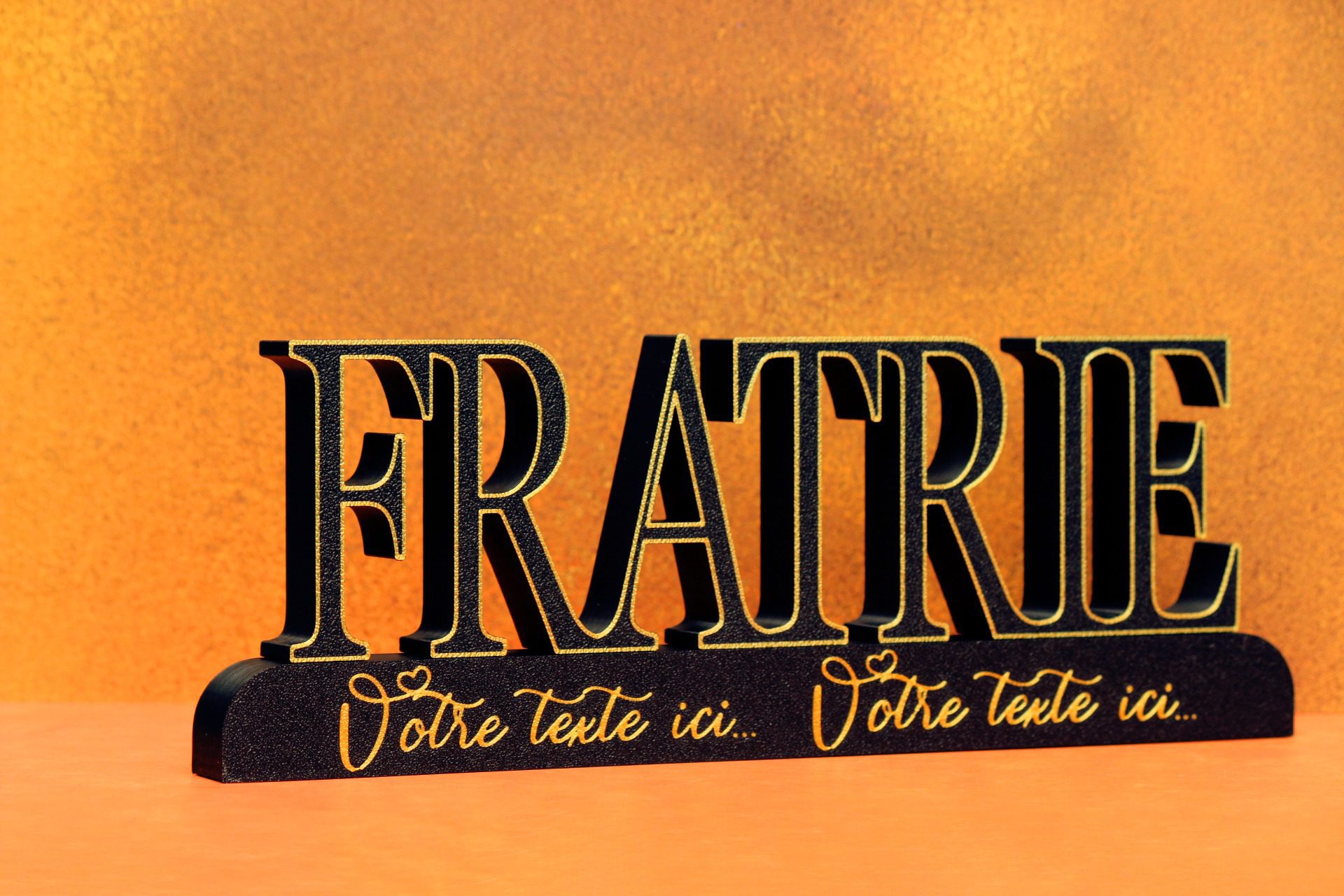 Vous cherchez un cadeau symbolique pour célébrer le lien entre frères et sœurs ? Le support FRATRIE personnalisé en impression 3D est une création unique, à personnaliser avec les prénoms des membres de votre fratrie.